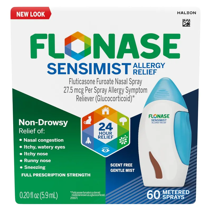 FLONASE Sensimist Nasal Spray 60 Sprays provides gentle, non-drowsy relief from nasal allergy symptoms. Reduces sneezing, runny or itchy nose, and congestion with a soft mist and 24-hour protection.