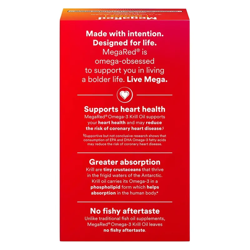 This krill oil is responsibly harvested from the Antarctic Ocean, ensuring environmental sustainability. The Antarctic krill population is one of the most abundant in the world, and MegaRed’s sourcing practices adhere to rigorous standards that help protect marine ecosystems and promote responsible fisheries management.