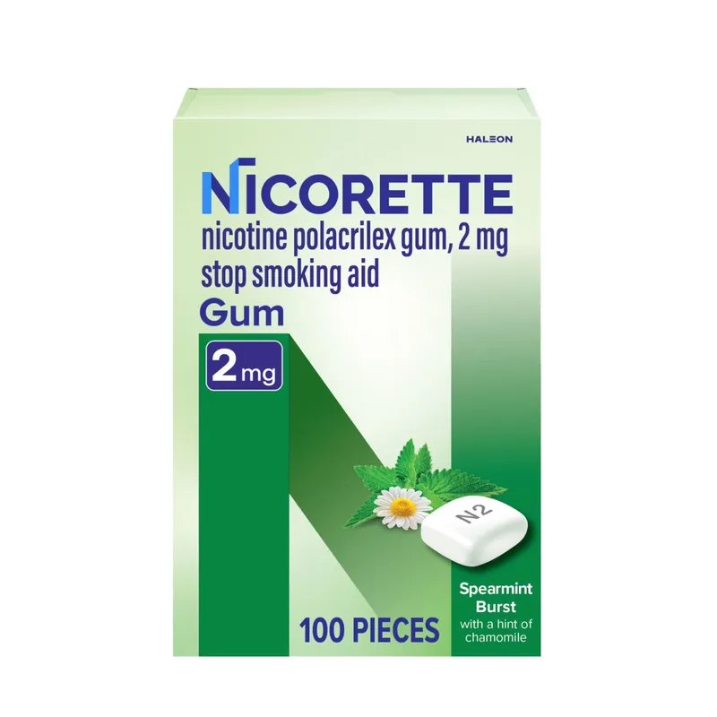 Nicorette Nicotine Gum Spearmint Burst 2mg is a nicotine replacement chewing gum designed to help adults manage nicotine cravings as part of a quit-smoking or smoking-reduction plan. Each piece delivers a controlled dose of nicotine, released gradually while chewing, to help reduce the urge to smoke throughout the day.